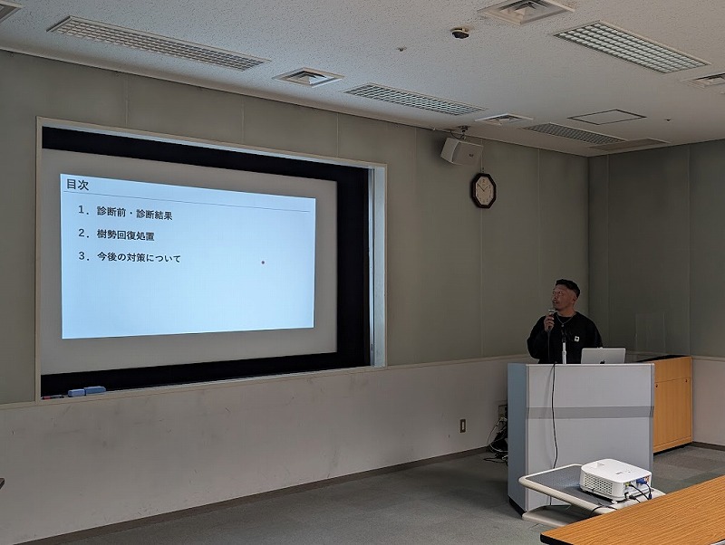 1)「志摩市家建茶屋跡のオオシマザクラの診断と治療」 浅野卓磨会員