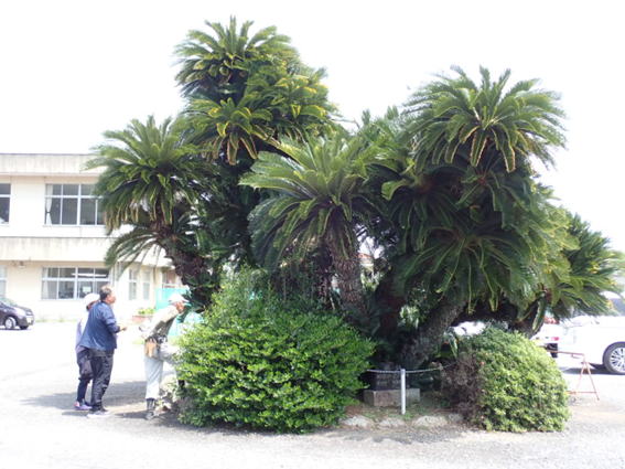 樹齢約370年と言われるソテツ。令和6年度より枯死部が見られ、その調査と対処方法を依頼。 |